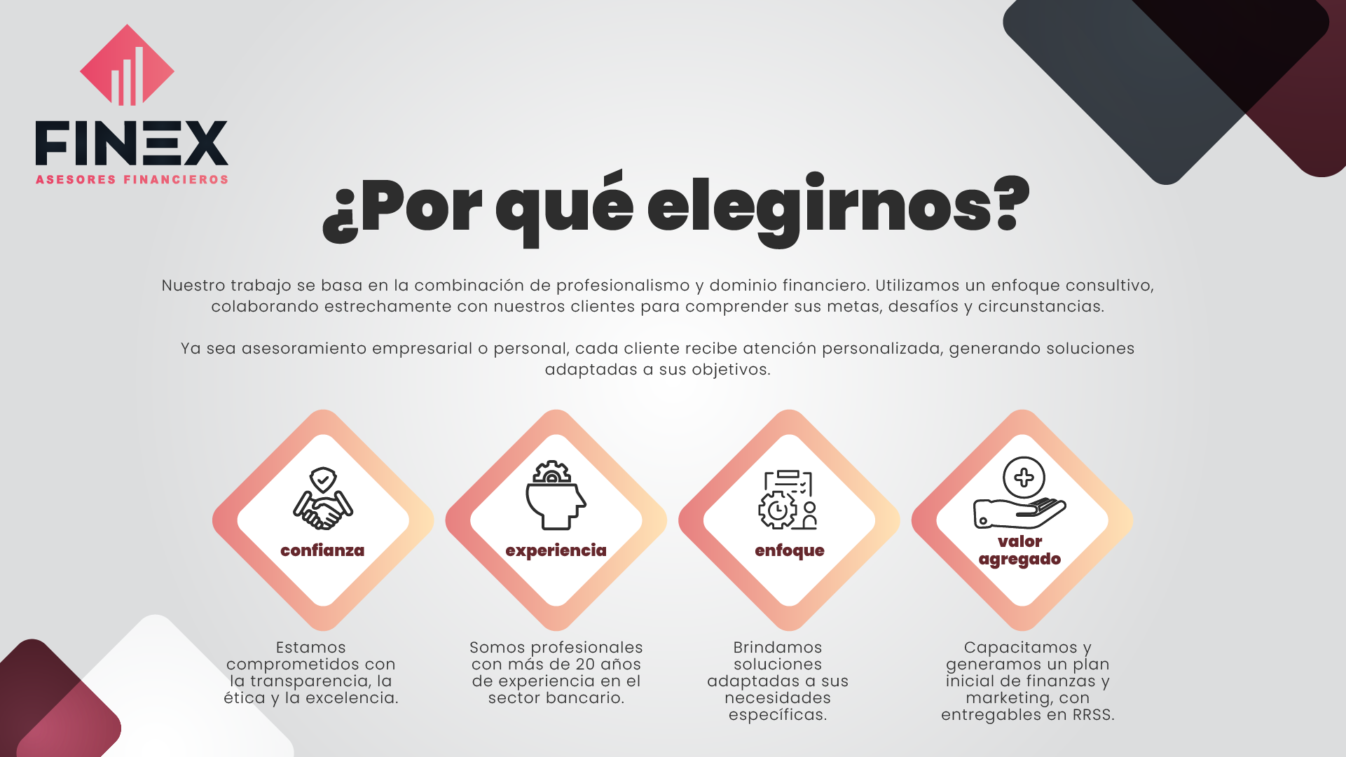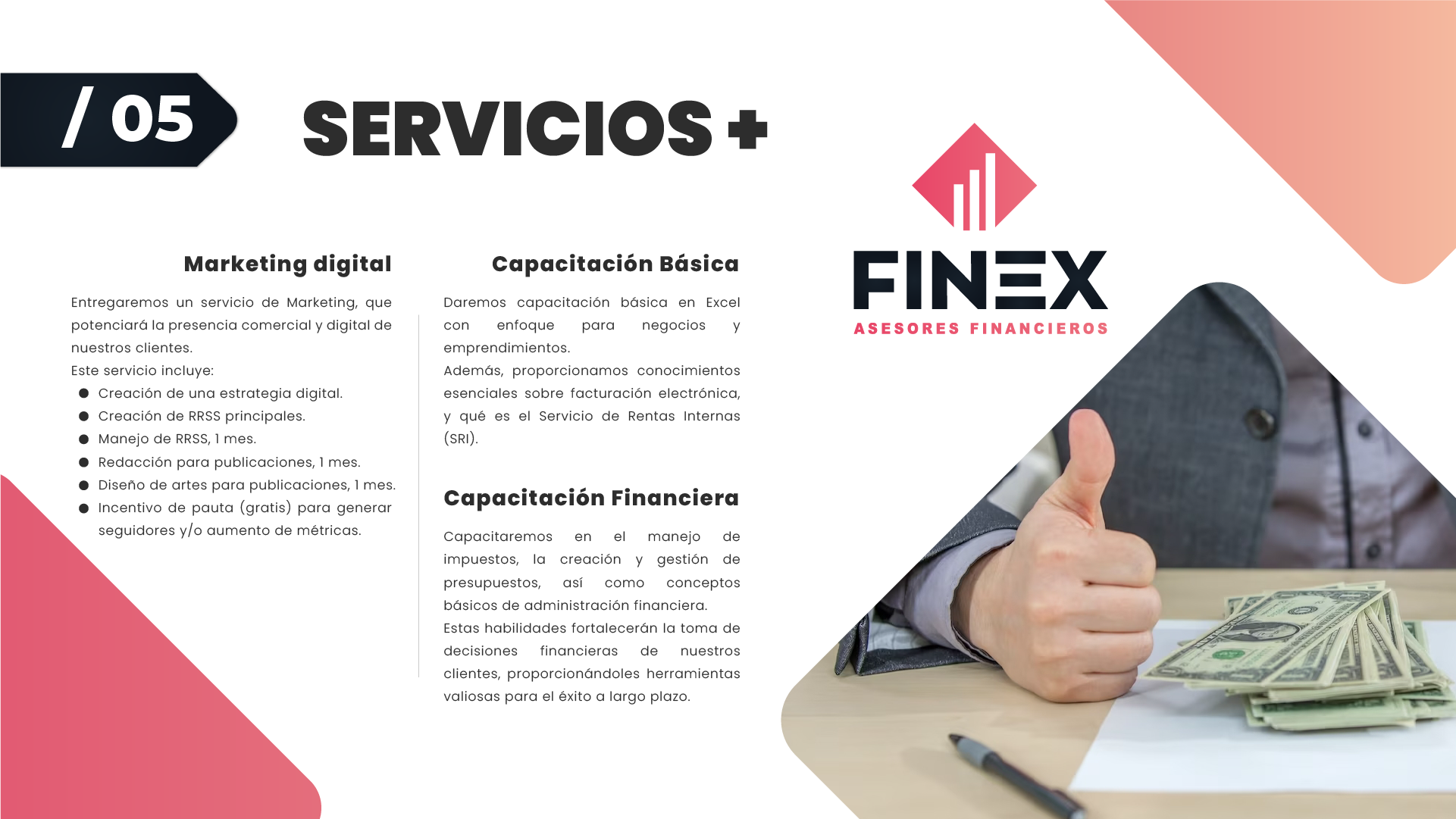 Como profesionales, abordamos todas las necesidades financieras con precisión y eficiencia. Ya sea asesoramiento empresarial o personal, cada cliente recibe atención personalizada.